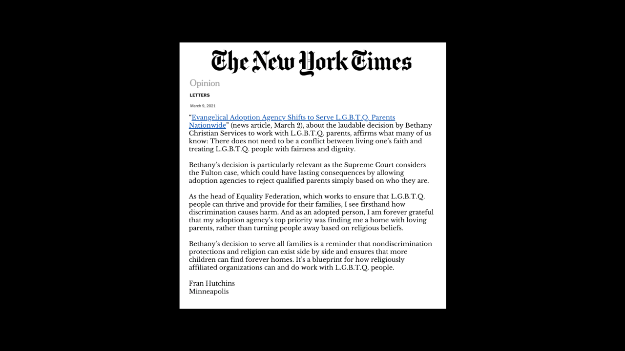 As the head of Equality Federation, which works to ensure that L.G.B.T.Q. people can thrive and provide for their families, I see firsthand how discrimination causes harm. And as an adopted person, I am forever grateful that my adoption agency’s top priority was finding me a home with loving parents, rather than turning people away based on religious beliefs.
