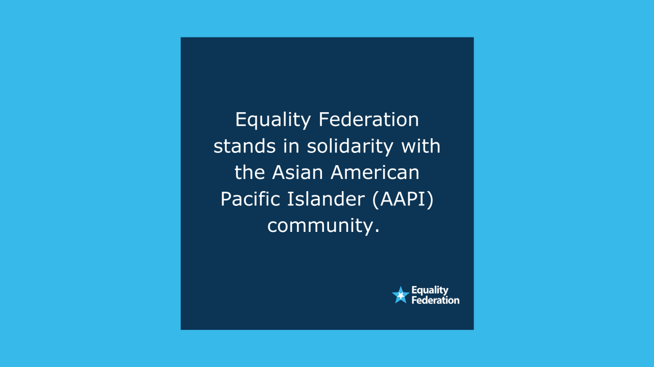 Equality Federation stands in solidarity with the Asian American and Pacific Islander (AAPI) community in condemning the senseless murder of eight people, including six Asian women, in Atlanta on Tuesday, March 16. We are horrified and heartbroken by the loss of life in Atlanta at the hands of misogyny and white supremacy.